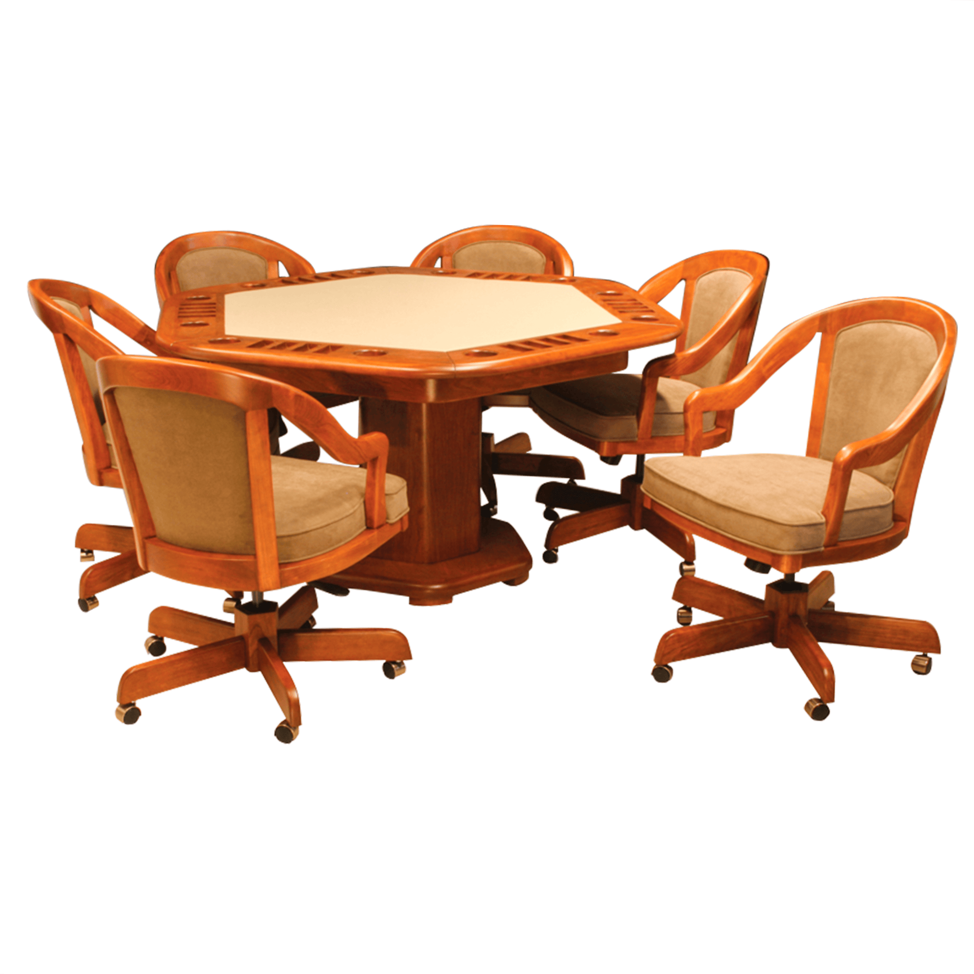 . English Tudor 84 Game Table 6 Chairs. The design is classic and vintage. This is exactly what game tables and chairs with casters are all about.